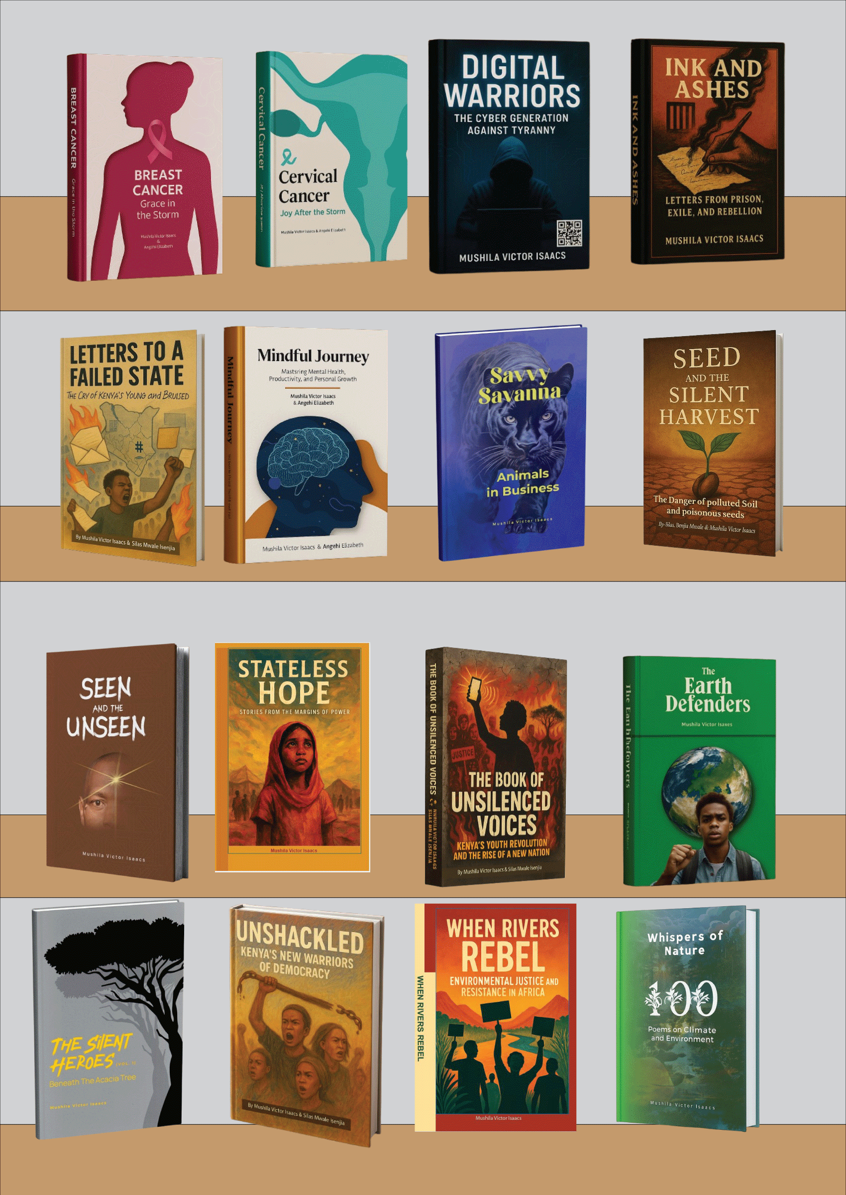 Mushila Victor Isaacs is a Kenyan author of bestselling works including Whispers of Nature, The Silent Heroes, and Seen and the Unseen. His writing blends literature, environmental stewardship, spirituality, and social justice. He is committed to inspiring readers while advocating for climate action, democracy, and cultural preservation.