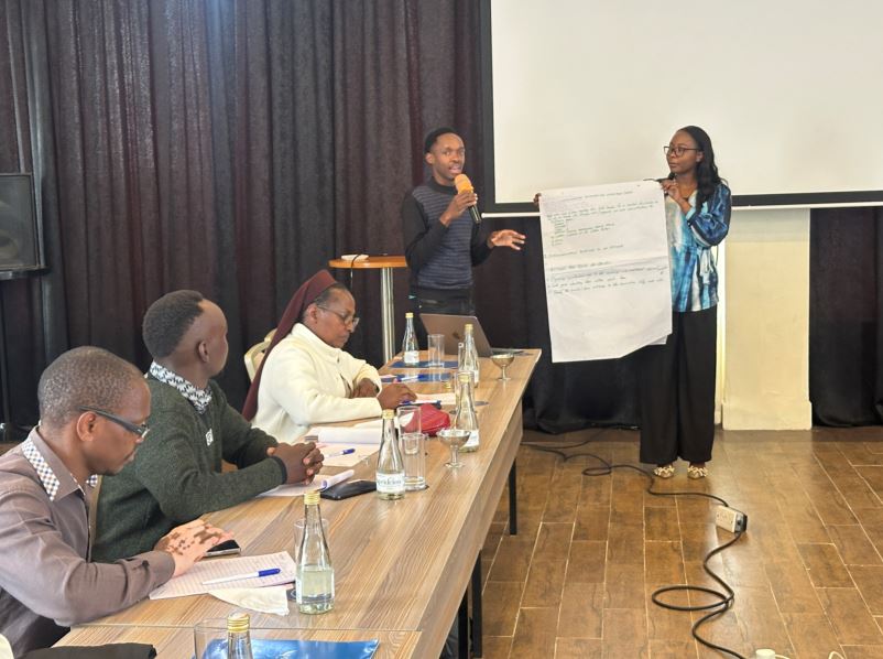 Ashley Kitisya, Fossil Free Campaigner for Africa with the Laudato Si’ Movement, presents key points during the interfaith meeting in Nairobi on July 28, 2025.